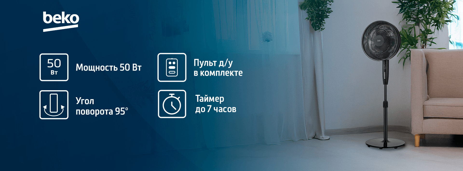 Несмотря на компактные размеры, мощность вентилятора составляет 50 Вт, что обеспечивает по-настоящему мощный воздушный поток и дарит вам приятную прохладу даже в самый жаркий день.